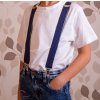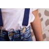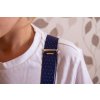 Námořnická modř - učiněná elegance, obohacená estetickými bílými tečkami, které dodávají jedinečný vzhled. Ať už samostatně, či doplněné stejným vzorem u otce a syna. Čistá elegance nesluší pouze dospělým, ale i dětem. Nechte to své, aby vyniklo mezi ostatními s těmito jedinečnými kšandami.