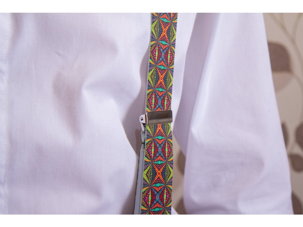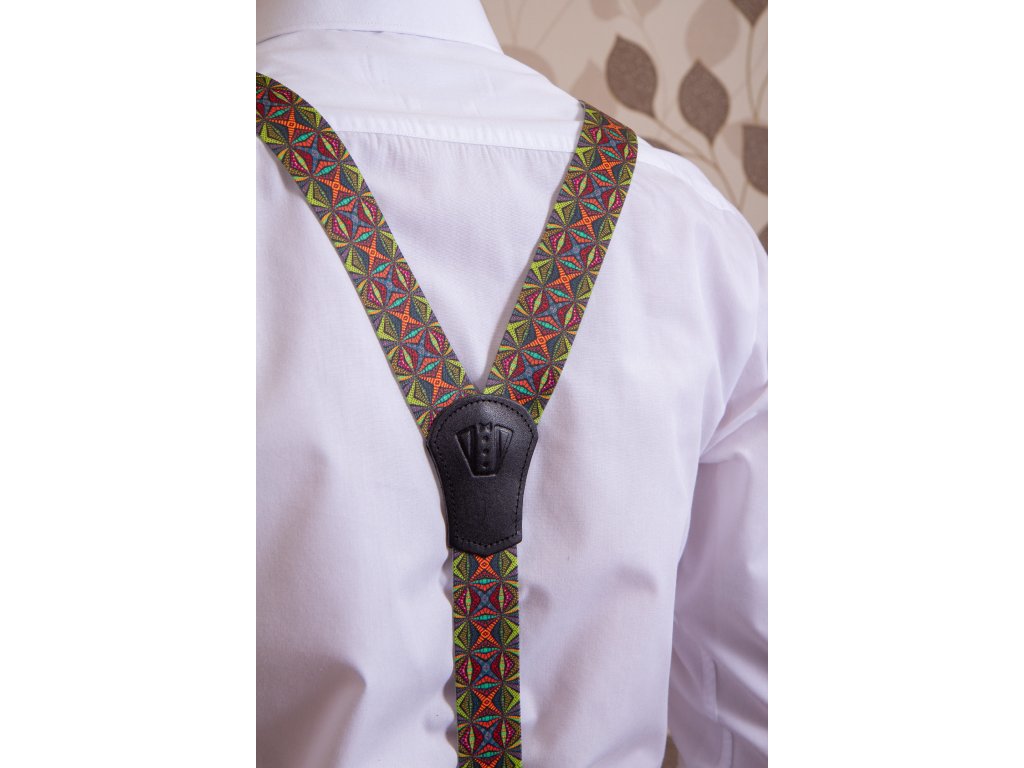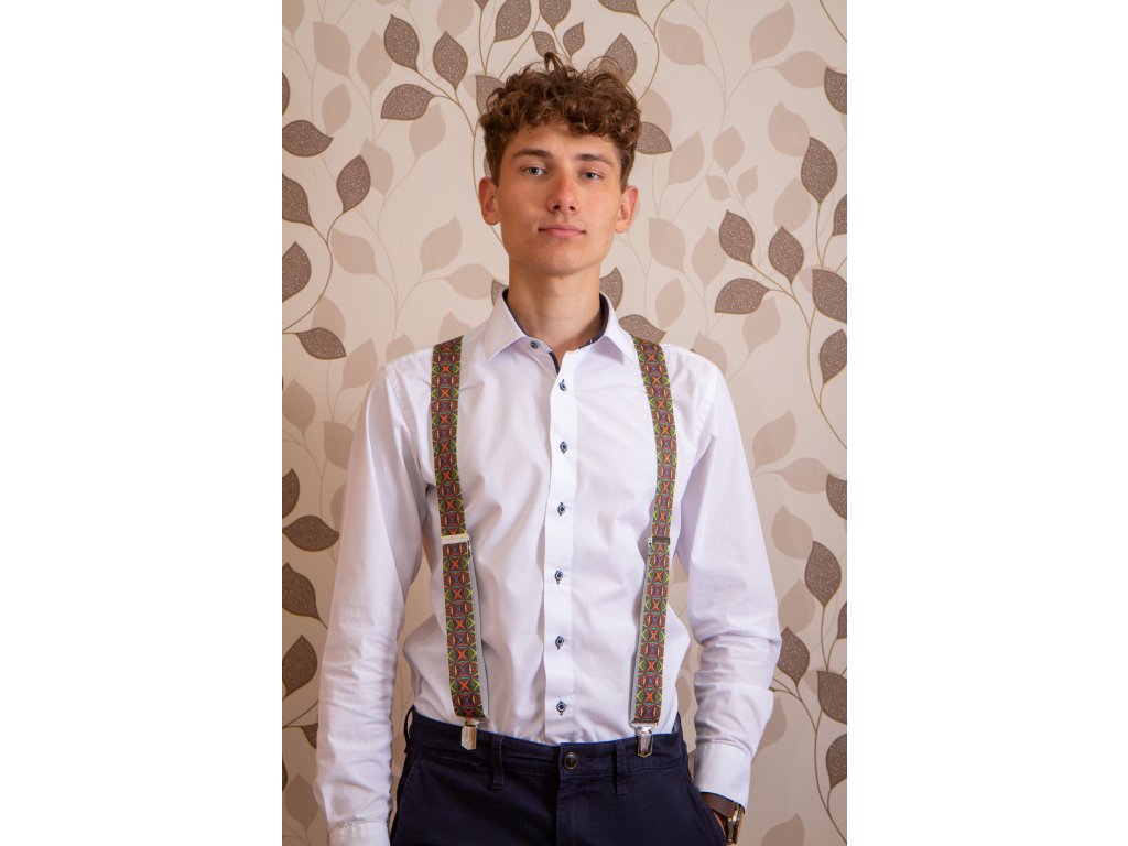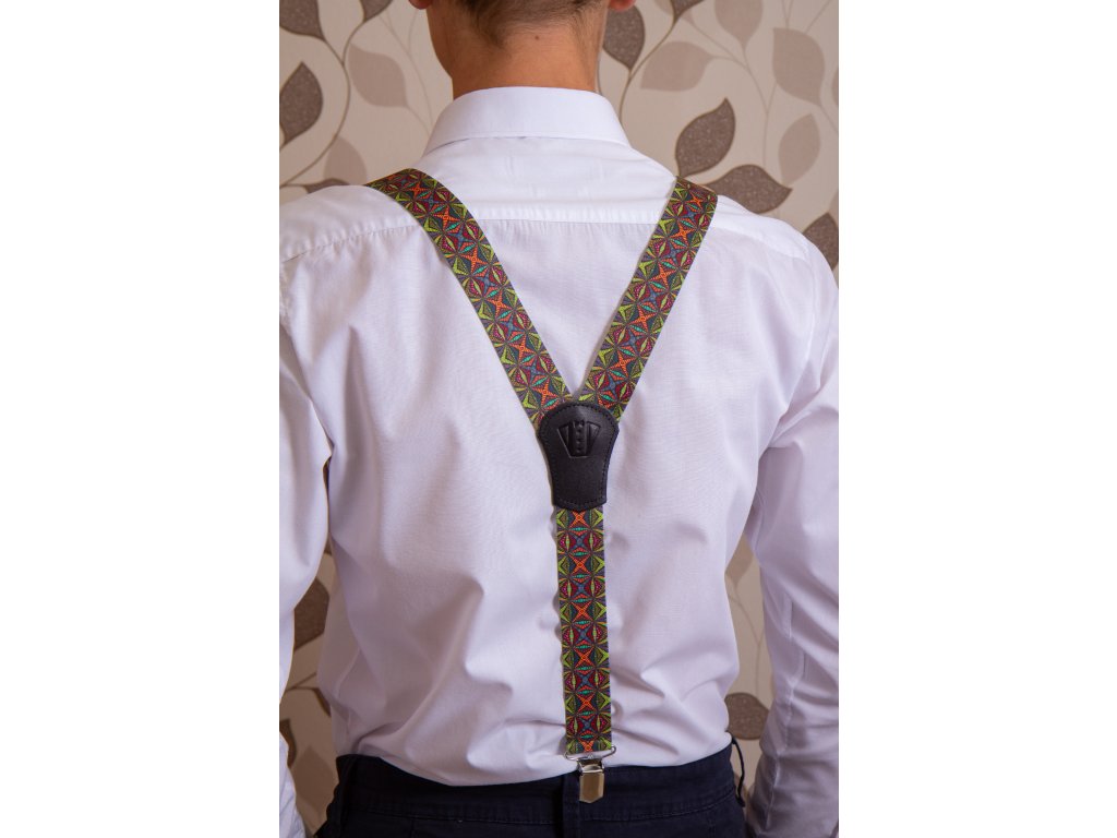 Netradiční barevný vzor, který připomíná kompas. Díky němu můžete vyjádřit svou osobnost, aniž byste ji museli popisovat. Tyto kšandy Vás nechají vyniknout ať budete na jakékoliv akce. Proto jestli máte rádi barevné kousky a nebojíte se vyjít z davu, tyto kšandy jsou přímo pro Vás
